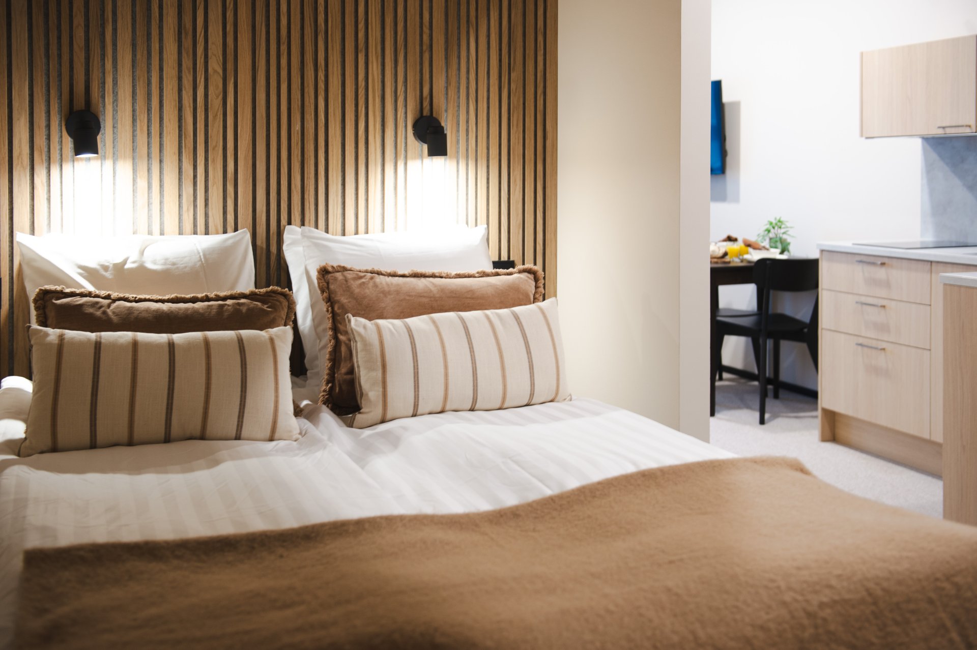 Haluamme hotellimme tukevan asukkaan hyvinvointia. Hotellissamme voit elää tavallista arkea - majoituksen lisäksi pääset kokkanamaan omassa keittiössä ja treenaamaan monipuolisesti Suomen suurimmassa hotellikuntosalissa.